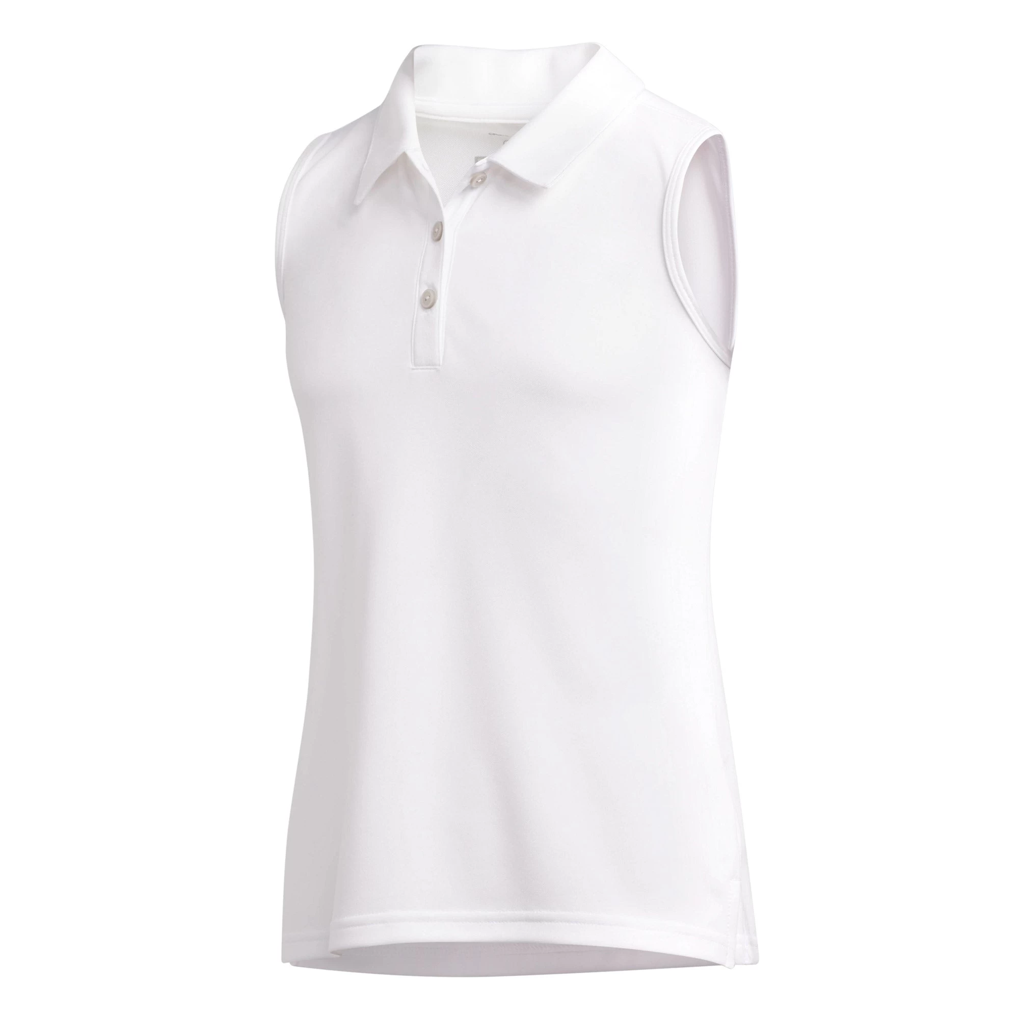 Get breathable comfort both on and off the golf course with the Adidas Performance Sleeveless Golf Polo. This polo is built with a comfortable, moisture wicking fabric that pulls sweat from the body to keep you dry and comfortable during the entire round. There is a built-in UPF 50+ UV protection to keep you protected from the harmful UV rays of the sun and the Regular fit with straight silhouette provides a flattering feminine fit. A metallic Adidas Badge of Sport logo above the right hem adds a subtle touch of style.