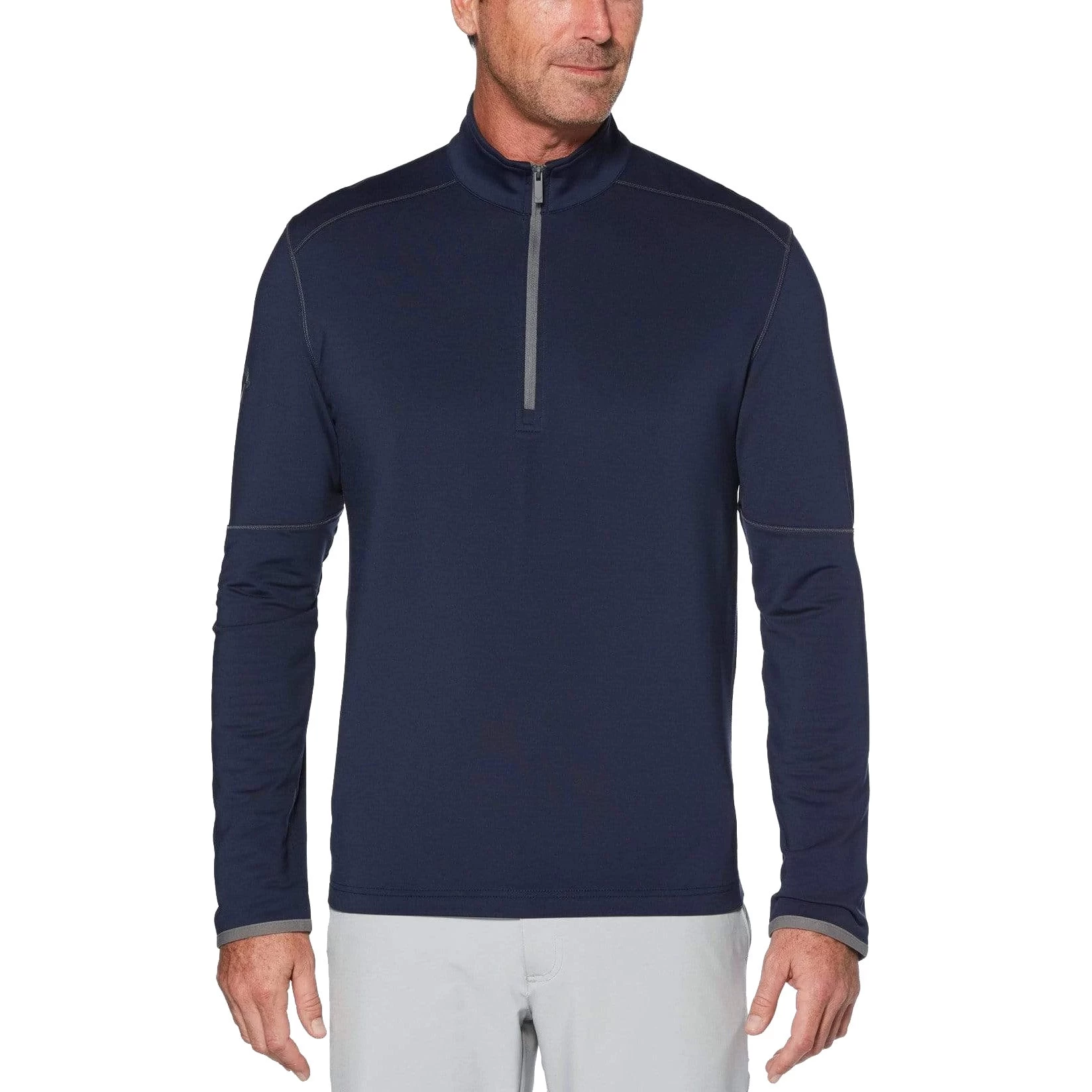 Conquer the elements during your round with the Callaway Swing Tech Outlast Golf 1/4 Zip. The Outlast has been designed with the innovative Outlast technology that will keep you cool in warm weather and warm when the weather cools off. This material absorbs, stores and releases heat for optimal thermal comfort and the stretch fabric is enhanced with Swing Tech through the shoulders which lets golfers maximize their range of motion with every swing.