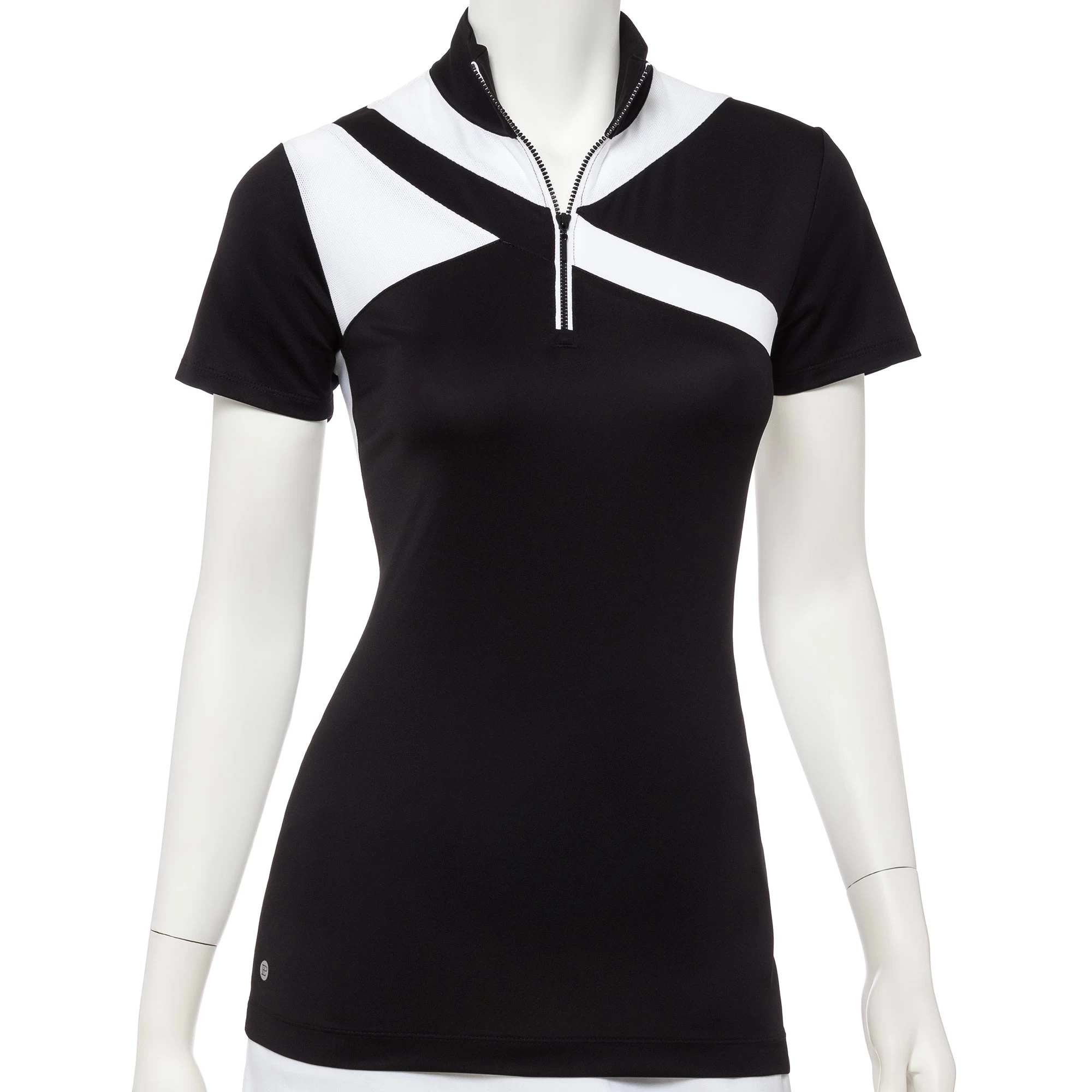 The EP NY Work It Short Sleeve Graphic Blocked Womens Golf Polo is a statement making polo in the ultimate classic color combination of black & white. The front and back blocking is striking and supremely flattering, while the fluid jersey fabric of this polo makes for a flawless execution of these lines!