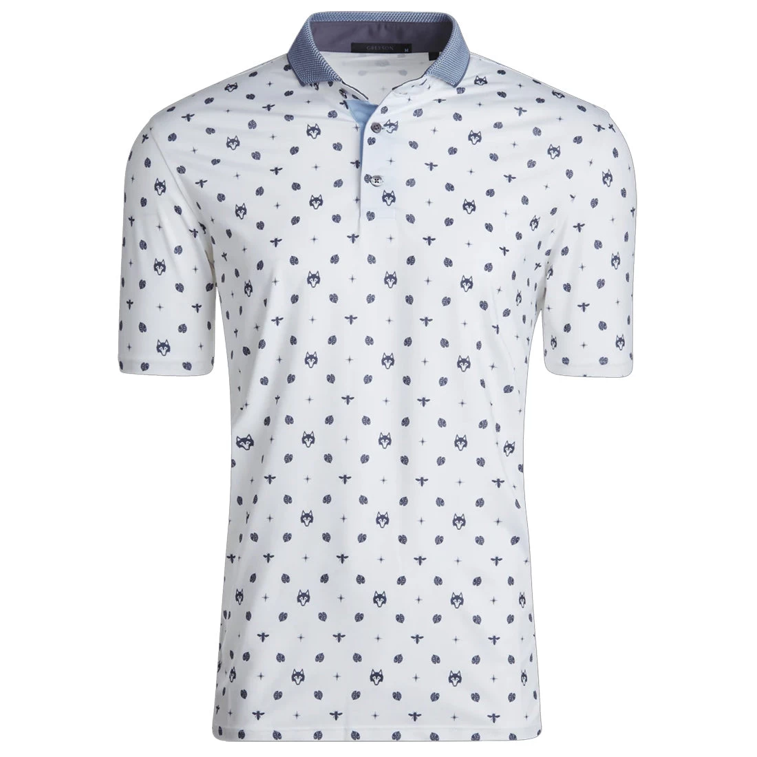 Style up your kids golf wardrobe with the Greyson Jungle GOAT Golf Polo. The Jungle GOAT features a four-button placket with a contrast collar and multiple wolf and jungle leaf logos for a stylish look. This polo is built with a four-way stretch that moves with you throughout the golf swing for comfort and its also moisture wicking and quick drying to pull sweat from the body and keep you dry and comfortable throughout the round. There is UVA and UVB protection which keeps you protected from the harmful UV rays of the sun and they look great with either pants or shorts to keep you looking good on and off the golf course.
