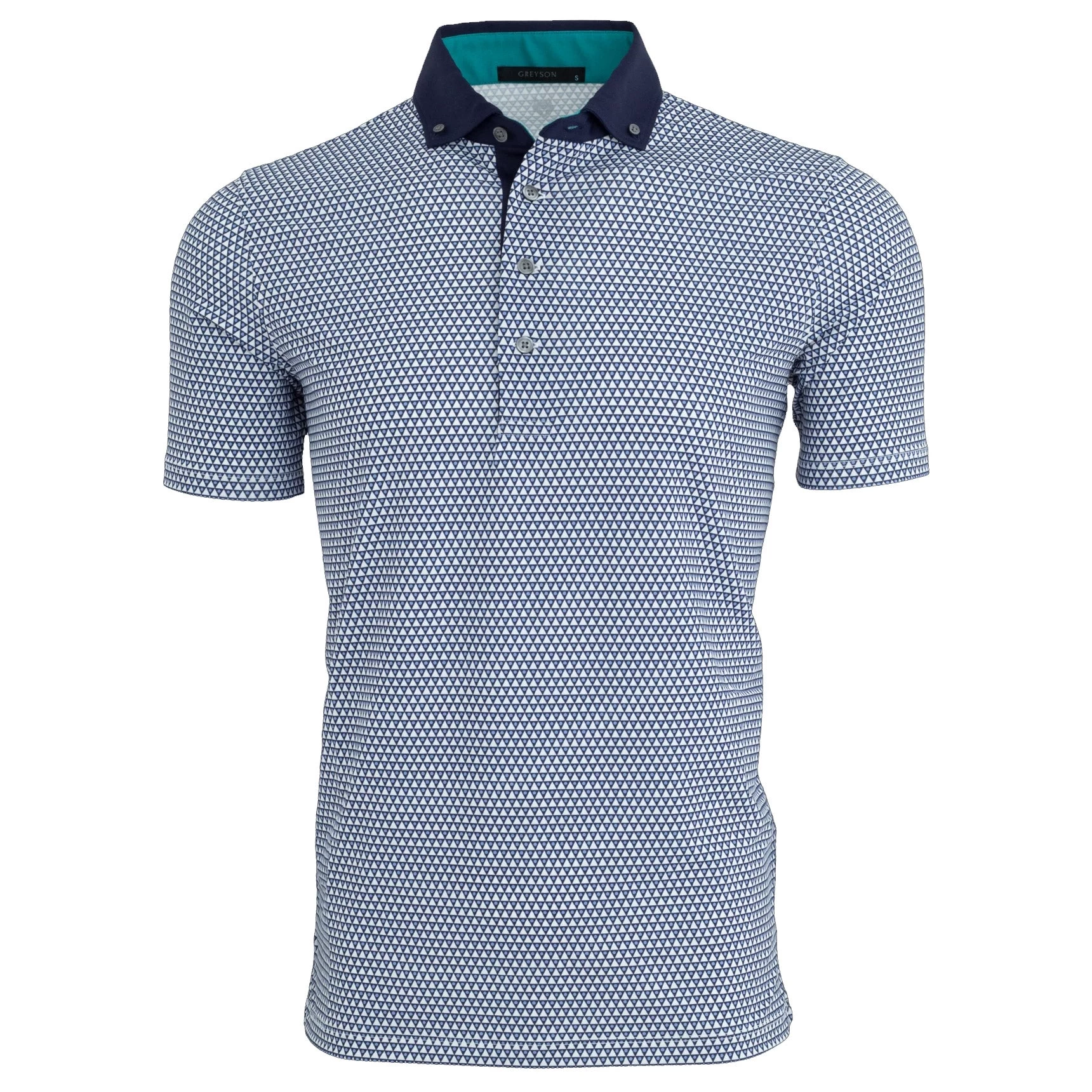 When the mountain meets the moon, the mountains symbolize a point linking heaven and earth and the pattern on the Greyson Moon and Mountain Golf Polo features a print representing this symbol. This polo is built from a technical blend of polyester and elastane that is comfortable and features anti-microbial and moisture wicking properties with tons of stretch. The four button placket and contrast button down collar and wolf logo on the back yoke provide added styling to keep you looking good on and off the course.