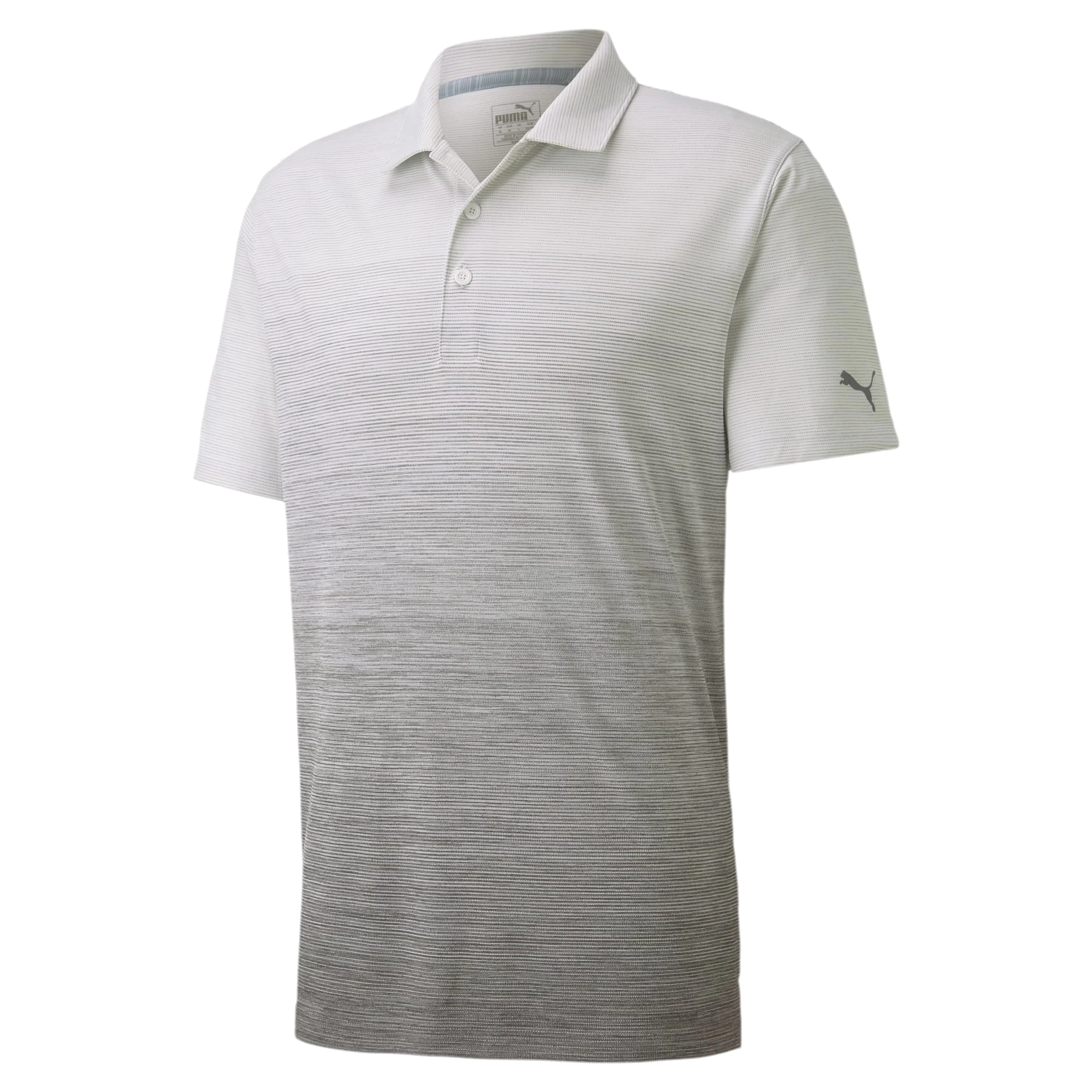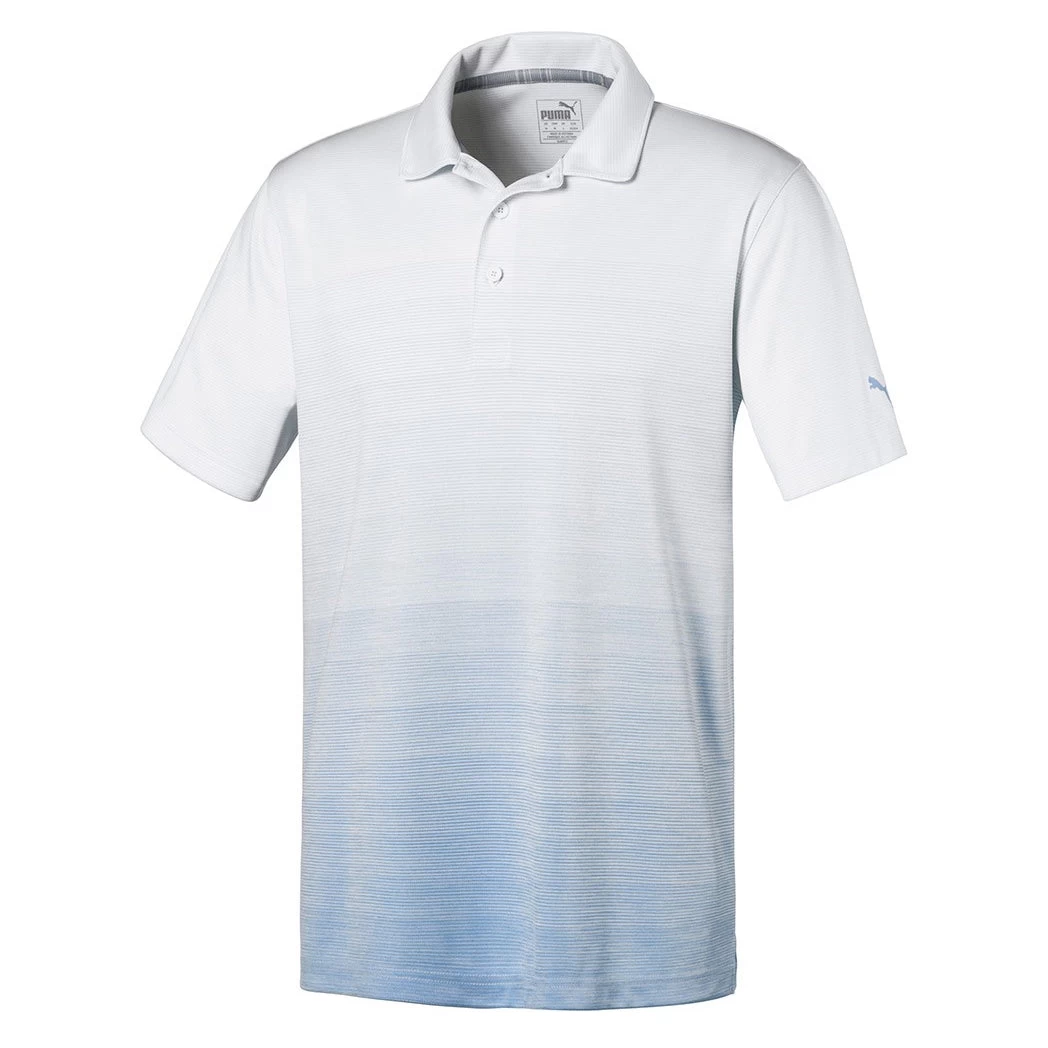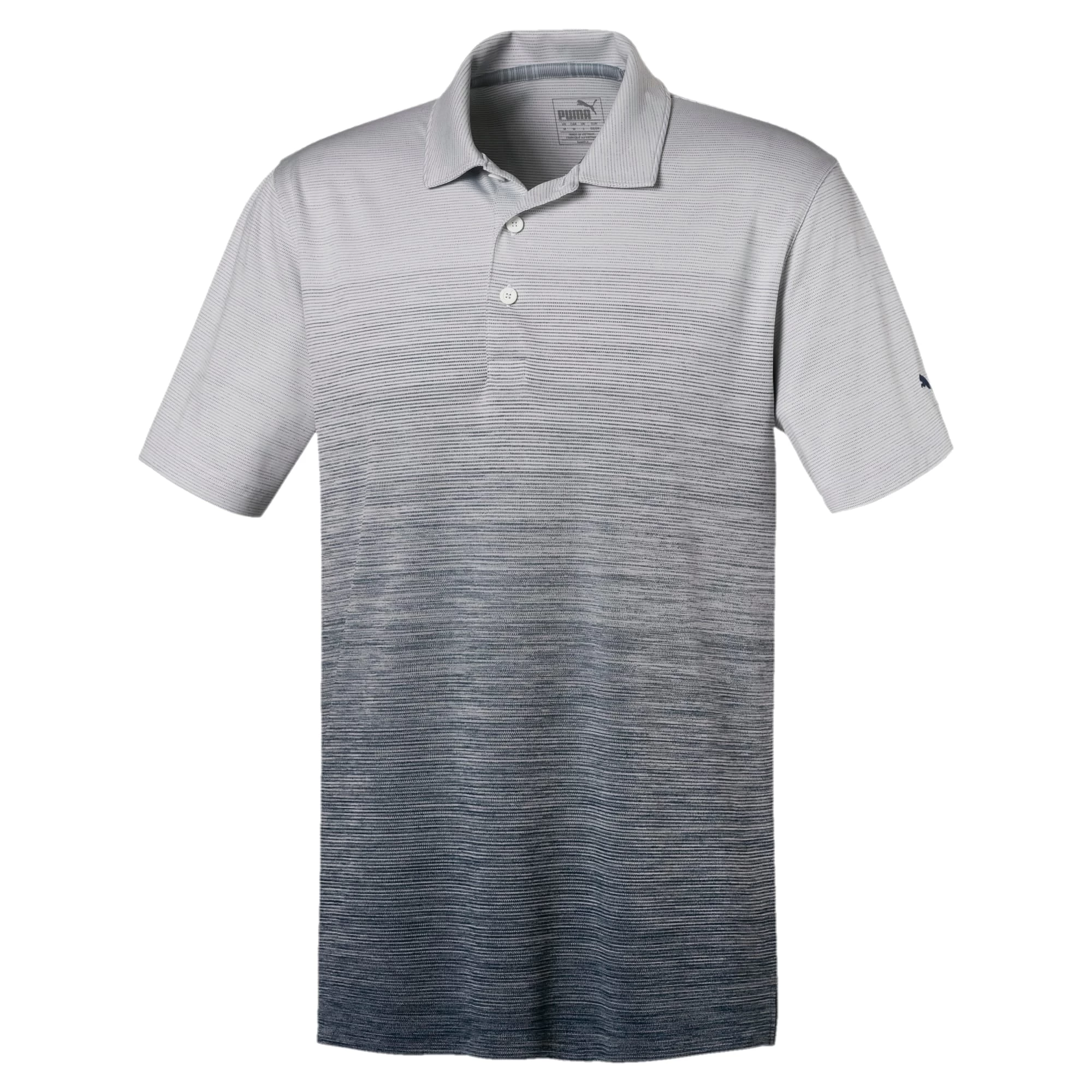 Get a fresh look for the course, the office or out on the town with the Puma Ombre Polo. This polo features dryCELL which is a technical fabric that pulls moisture away from the body to keep you dry and comfortable at all times. The Ombre Gradient print makes this polo stylish and a Puma Cat logo on the left sleeve adds to the style.