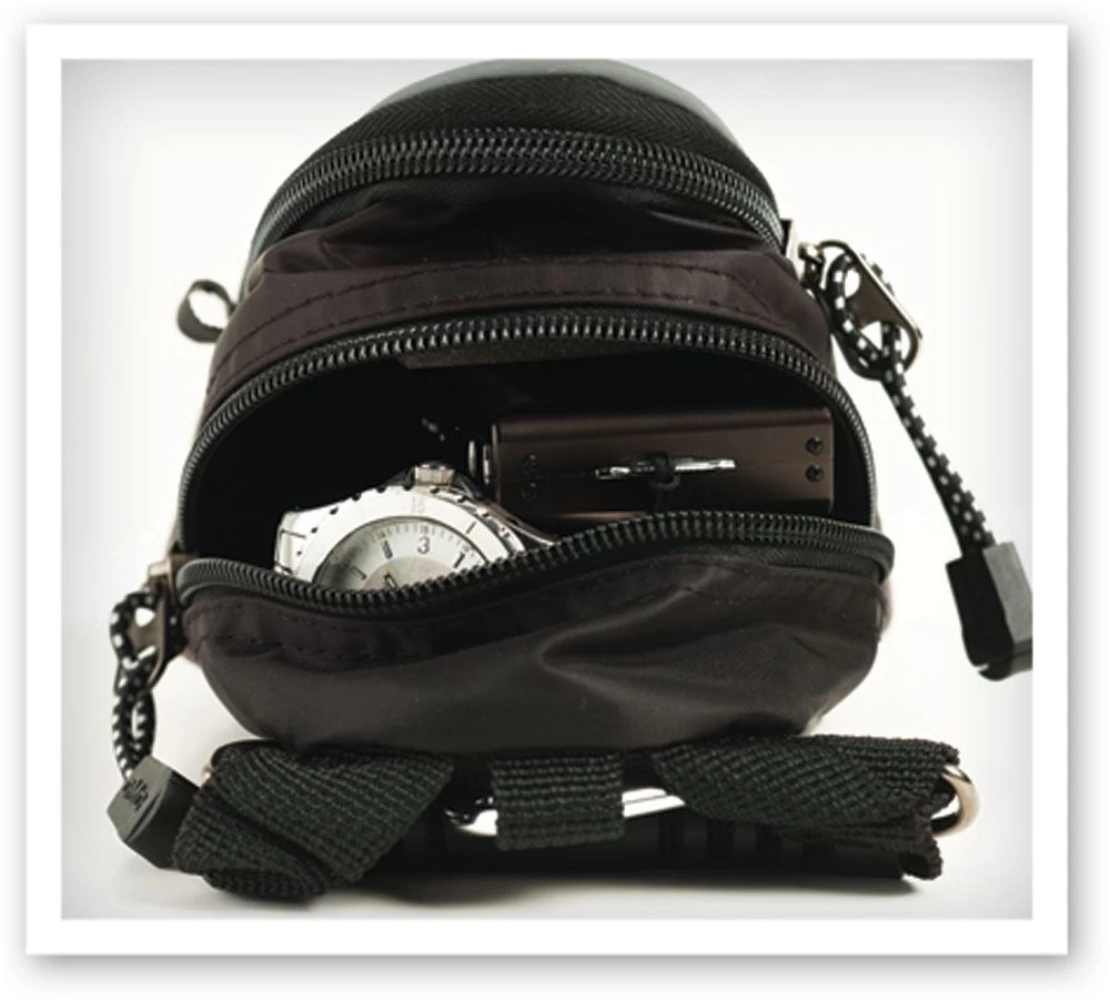 Officially Licensed 10″x8″x6″ Mini Day Pack! It has zippered compartments, a mesh pocket, a rubber handle, carabiner clip, belt loop, and a strap attachment.