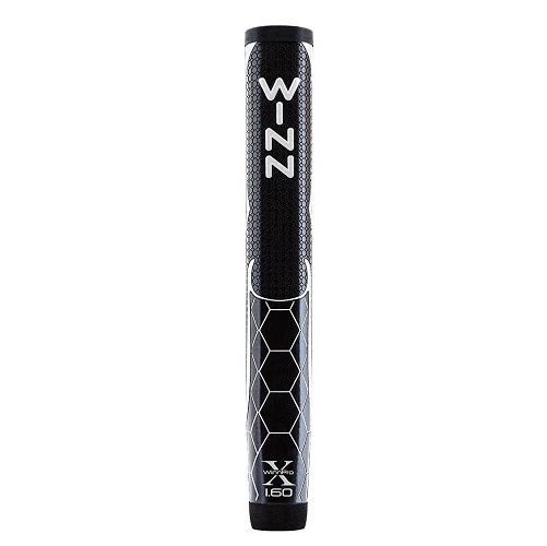 This black grip features attractive silver accents and an extreme oversized feel. The large profile tapers minimally to eliminate wrist movement during the stroke. The comfortable polymer material is very tacky and instills confidence on every putt.